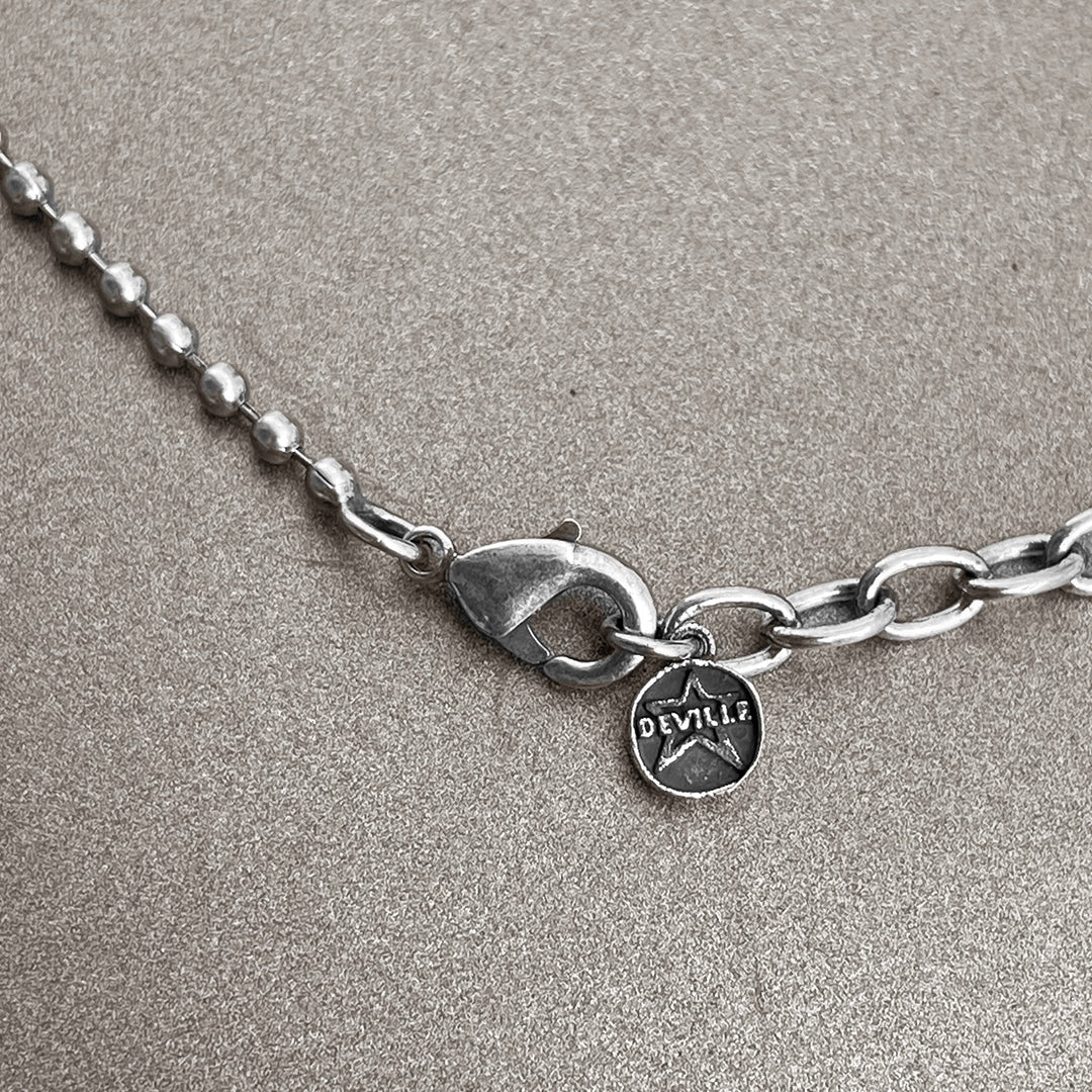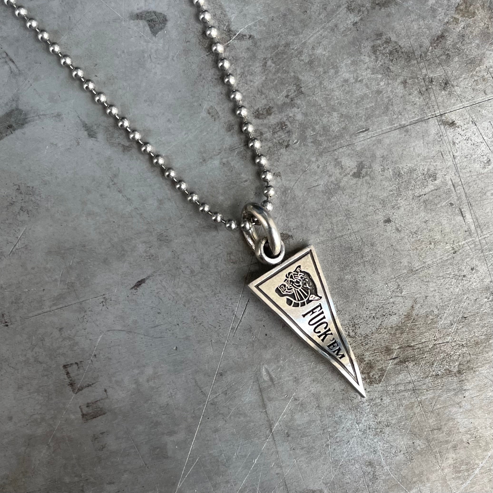 The College necklace is a minimalist yet powerful piece. Featuring a triangular pendant with finely detailed engravings, this necklace brings a classic yet edgy feel to your look.