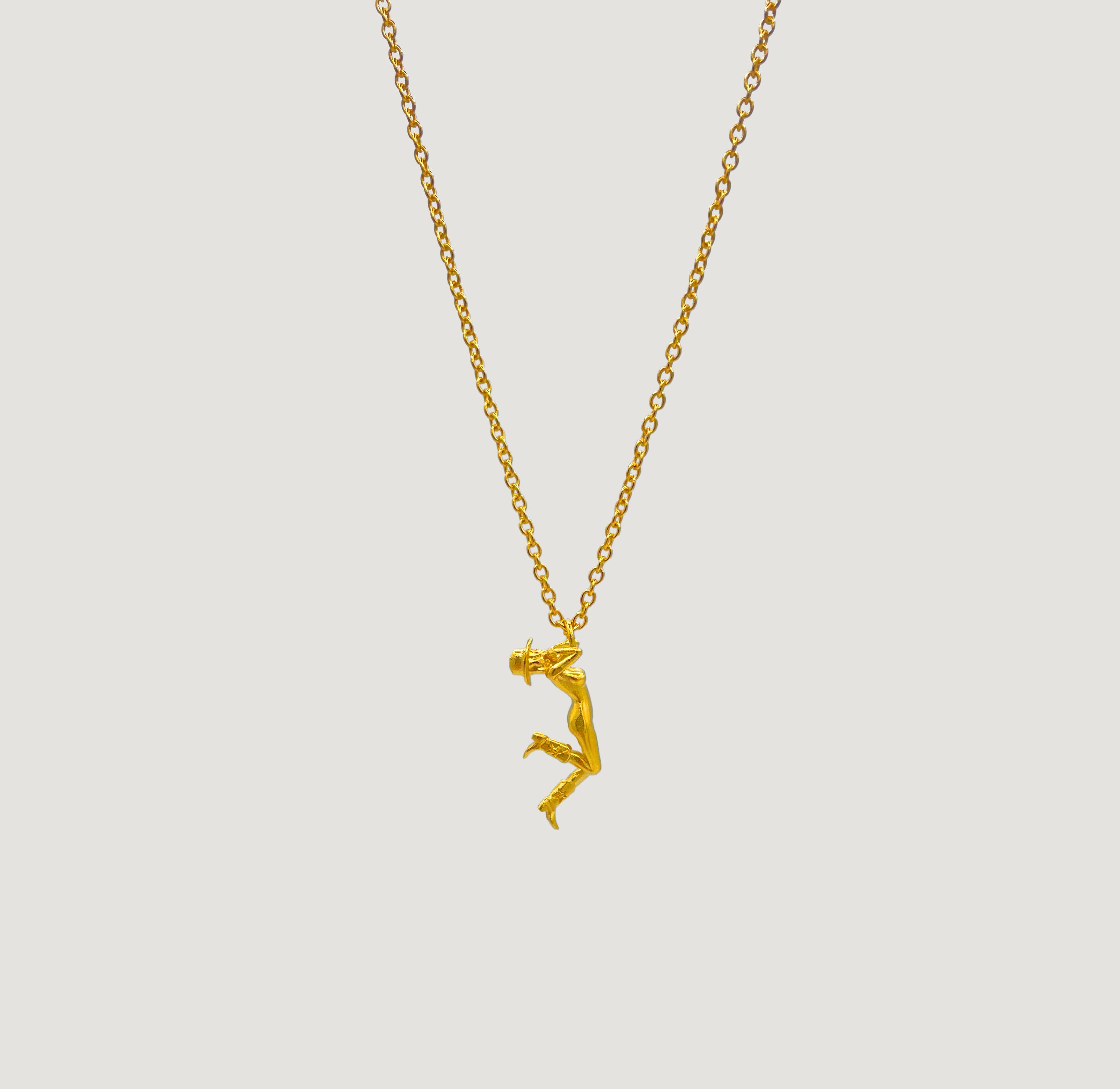 The Cowgirl Necklace is the smaller version of our cowgirl necklace collection,a striking piece that captures bold Western flair. Available in both silver and gold, featuring a detailed pendant of a cowgirl in mid-motion, complete with signature cowboy boots and hat, this necklace brings an edgy and playful charm to your style.