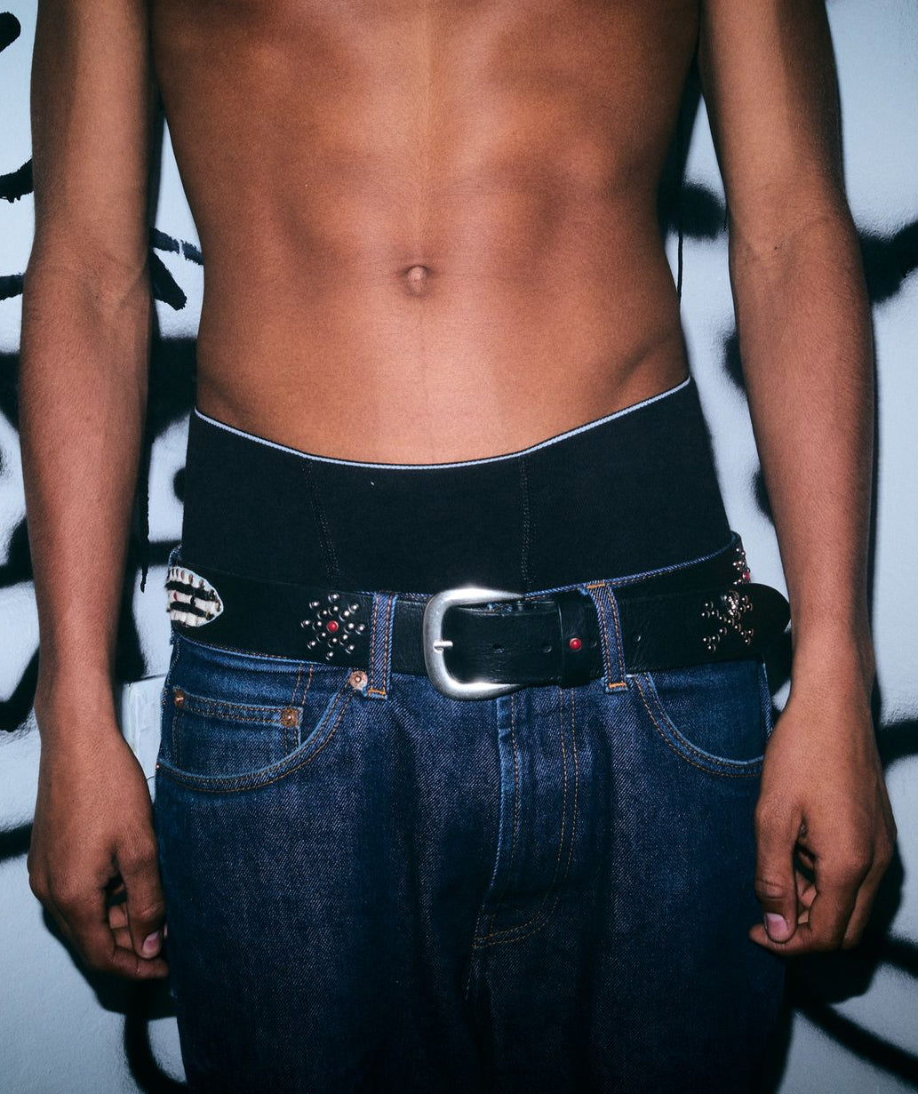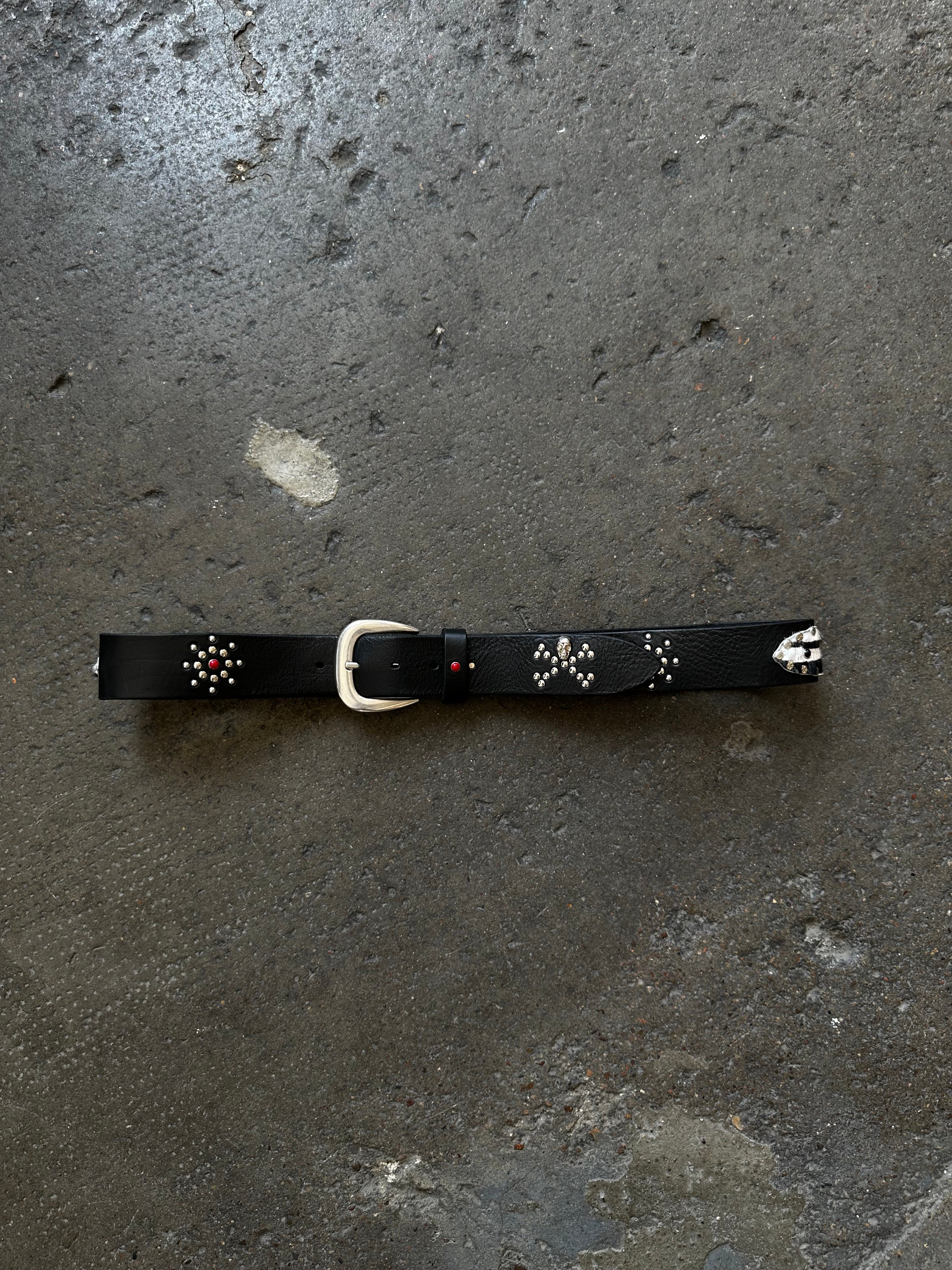 The Studded Belt is crafted from genuine Italian leather, accented by hand-studded details and zebra print pony hair inlays. Finished with a silver-plated buckle, it’s handmade in Italy—ready to elevate your look.